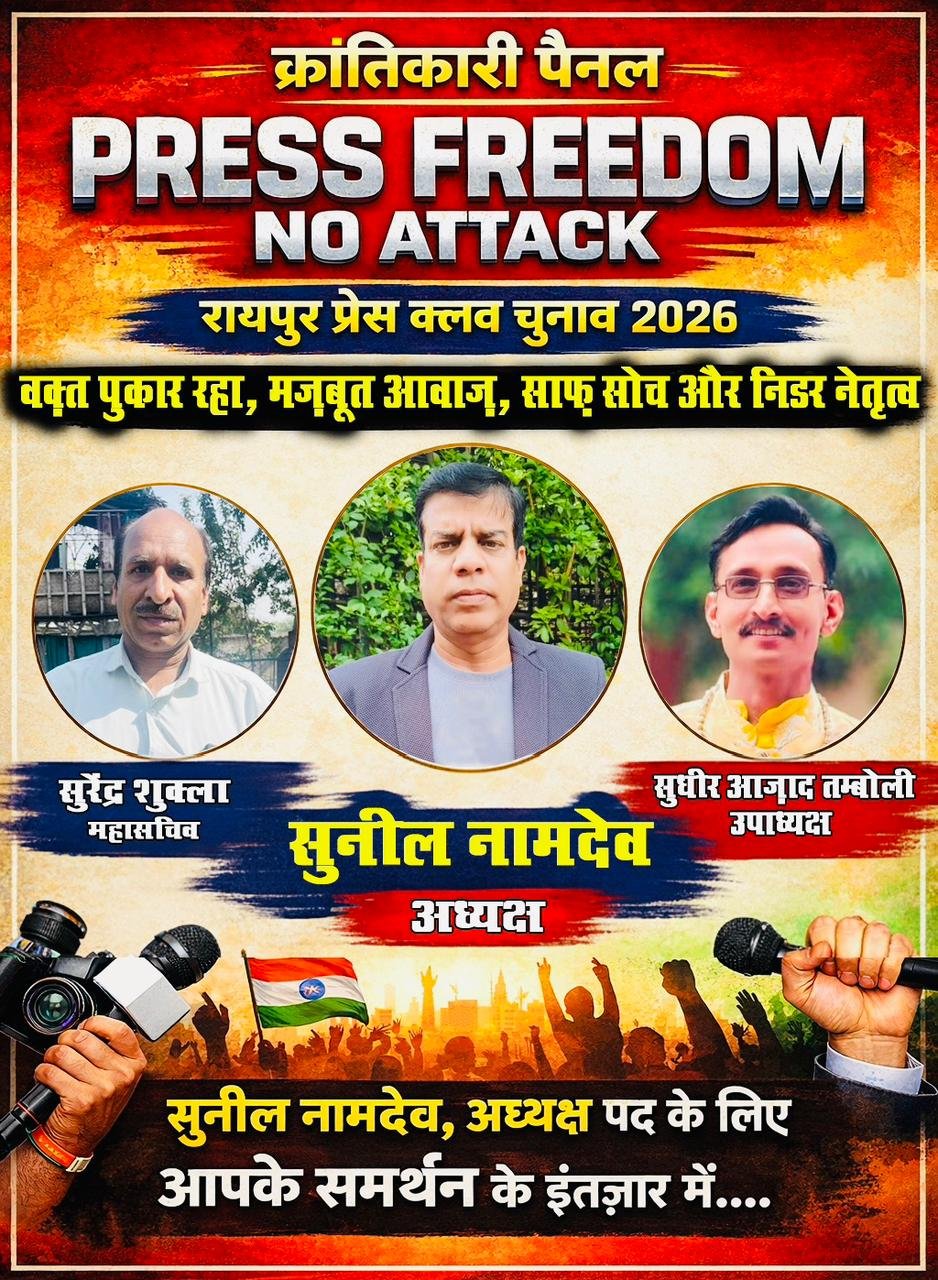 “हम साथ–साथ” के नारे के साथ उतरा क्रांतिकारी पैनल मौजूदा व्यवस्था को सीधी चुनौती दे रहा है,अब फैसला रायपुर के पत्रकार करेंगे।