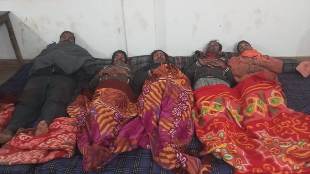 “वंही दूसरी तरफ इसी धान खरीदी केंद्र मेंं दो दीन से भूखा धरने पर बैठा एक और अन्नदाता माटीपूत्र किसान।