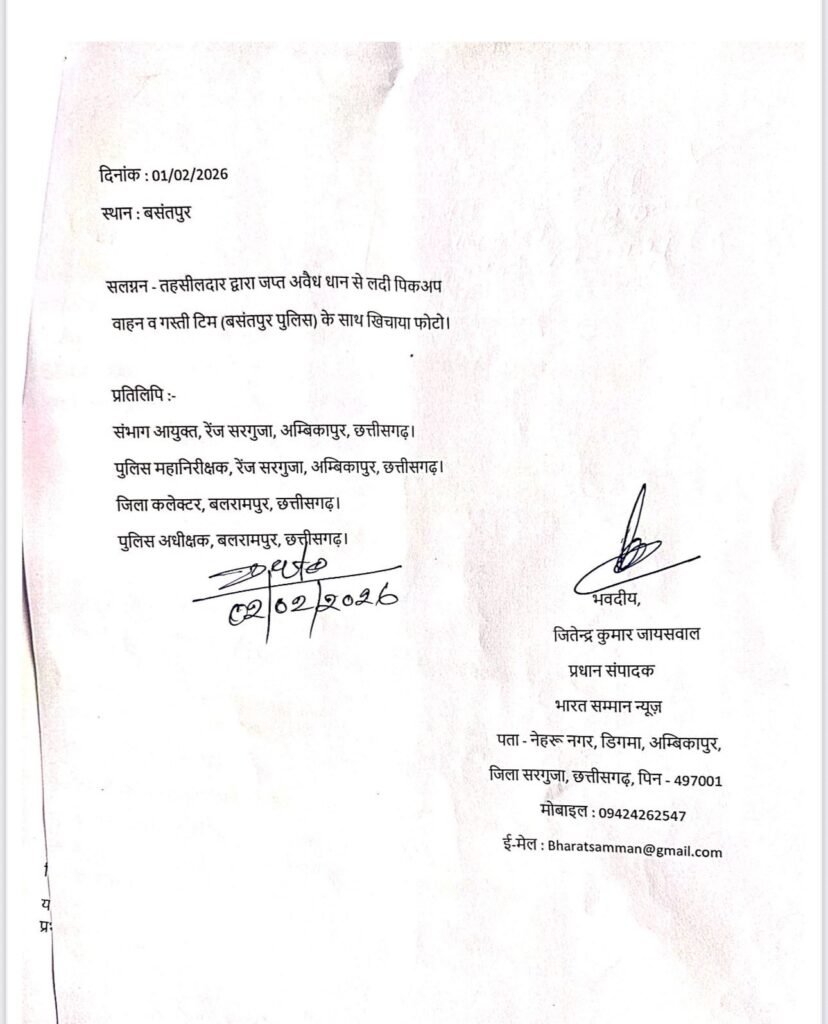 इस पूरे ‘अदृश्य’ खेल को लेकर ‘भारत सम्मान न्यूज़’ के प्रधान संपादक जितेंद्र कुमार जायसवाल ने मोर्चा खोल दिया है। उन्होंने 2 फरवरी 2026 को पुलिस अनुविभागीय अधिकारी (SDOP) वाड्रफनगर को एक औपचारिक आवेदन सौंपकर तीखे सवाल पूछे, और FIR करने की मांग की है।