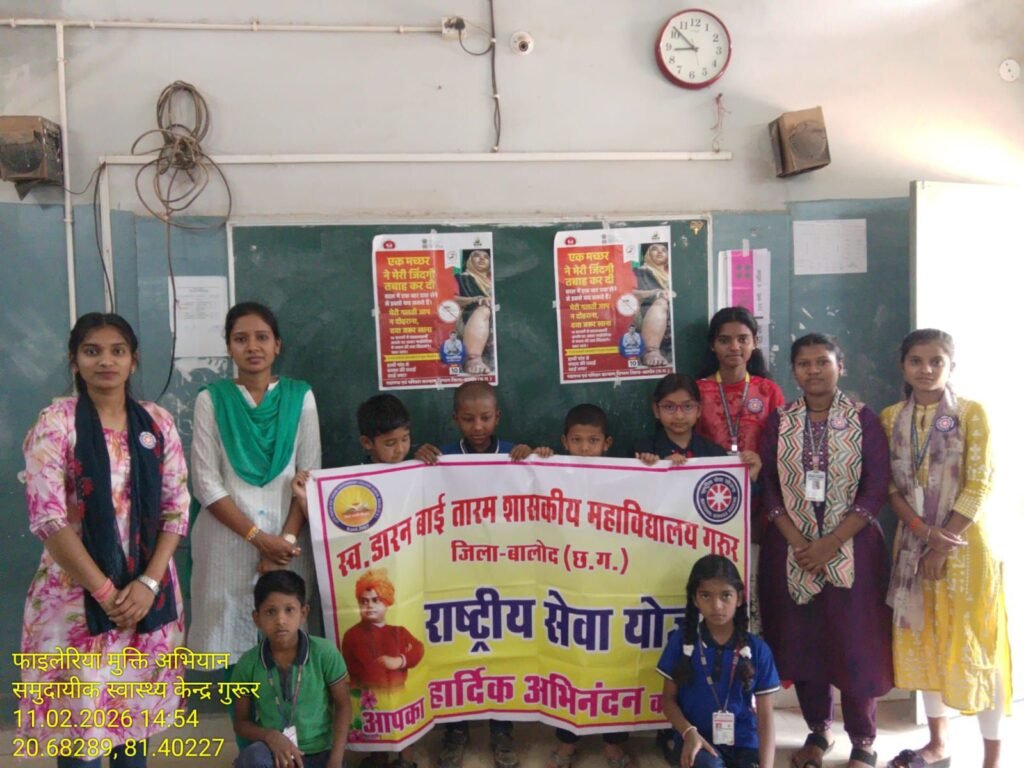 स्व डारन बाई तारम शासकीय महाविद्यालय गुरूर के राष्ट्रीय सेवा योजना के स्वयं सेवकों द्वारा फाइलेरिया उन्मूलन कार्यक्रम के गुरूर नगर के विभिन्न स्कूलों में जाकर छात्र छात्राओं को स्वास्थ्य विभाग के निर्देशानुसार फाइलेरिया एवं कृमिनाशक की गोली डी ई सी, एल्बेंडाजोलऔर आइवरमेक्टीन की दवाई खिलाने में सहयोग प्रदान किया।